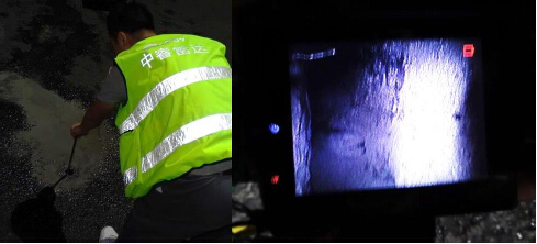 19對(duì)探測(cè)發(fā)現(xiàn)的一處大型空洞災(zāi)害點(diǎn)進(jìn)行釬探并采用電子內(nèi)窺鏡檢查地下空洞內(nèi)部情況。