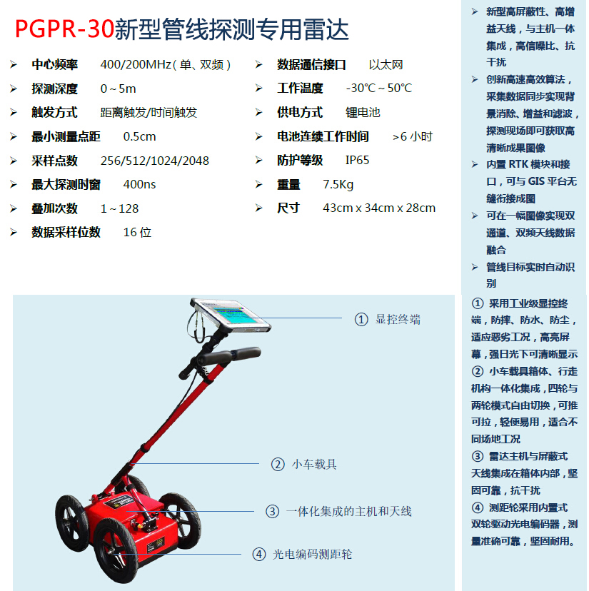 PGPR-30新型管線探測專用雷達(dá)技術(shù)參數(shù)